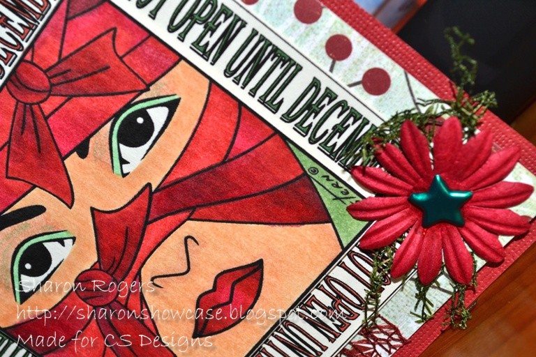 This little ATC has a "Steampunk" theme but I've coloured the CS Design "Steampunk Solitarie" Image in Xmas colors and used a Xmas Sentiment also from CS Designs so I can use it for today's Pink Saturday post and also to remind you all to enter our Wicked Wednesday Challenge this week!!